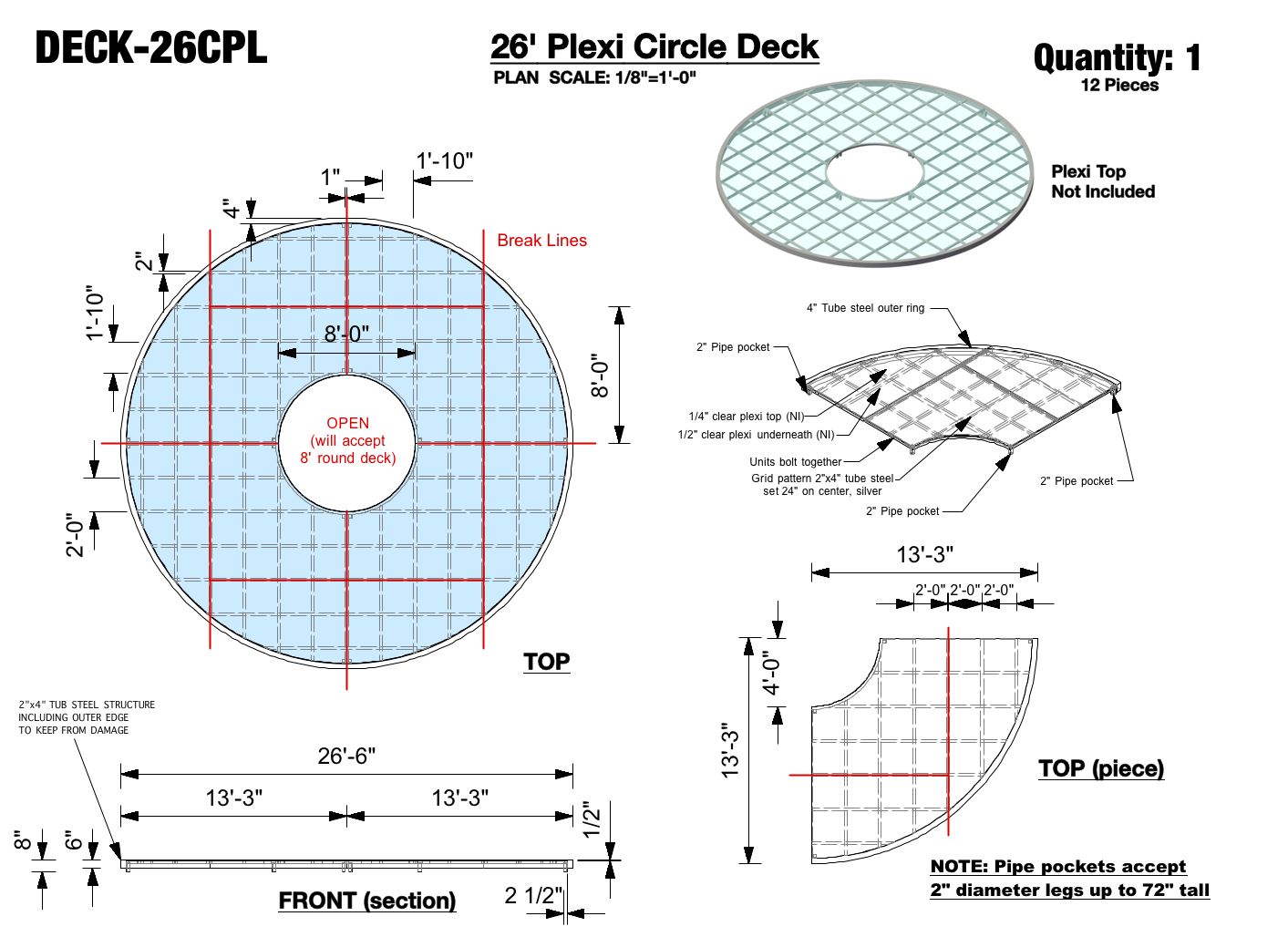 Tube Steel frame painted silver. Clear 1/2″ plexi with clear 1/4″ plexi on top.