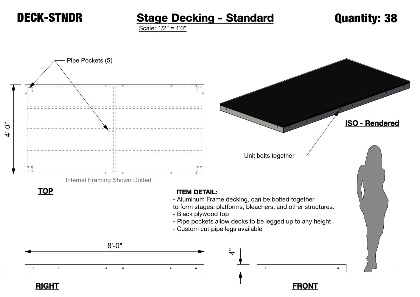 • Aluminum Frame decking, can be bolted together to form stages, platforms, bleachers, and other structures.