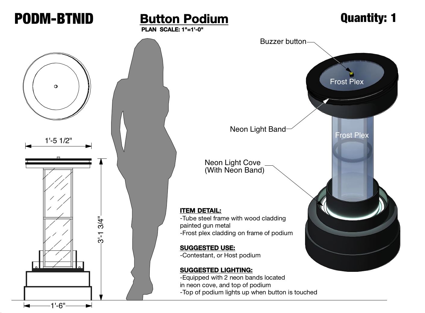 - Frost plex cladding on frame of podium